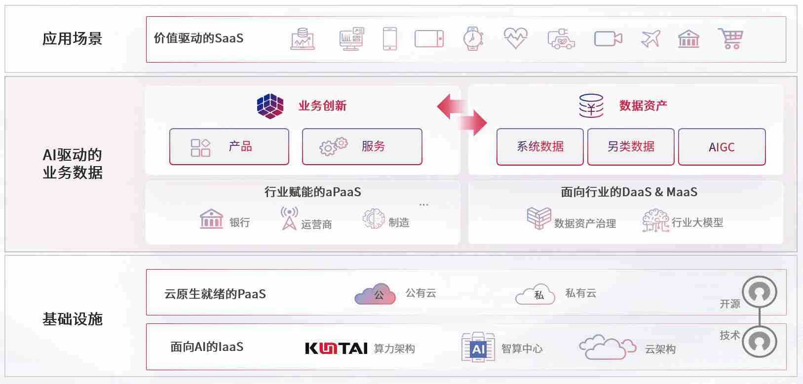 数字时代,,,,围绕企业数字化转型的关键要素,,,意昂2数码开创性的提出数云融合战略和技术体系框架,,,,着力在云原生、、、数字原生、、AI原生和信创产业上架构产品和服务能力,,,,为处在不同数字化转型阶段的快消零售、、、、汽车、、金融、、、、医疗、、政企、、教育、、、、运营商等行业客户提供泛在的敏捷IT能力和融合的数据驱动能力,,构建跨界融合创新的数字业务场景和新业务模式,,,,助力企业级客户建立面向未来的核心能力和竞争优势,,,,全面推动社会的数字化、、、智能化转型升级。。。。